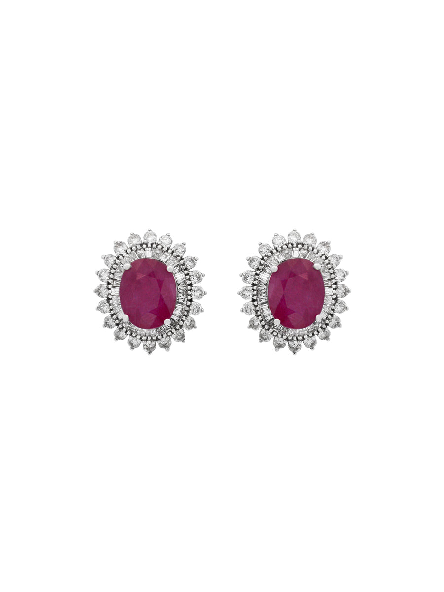 To elevate your look with a stylish pick! Features 6.60cts in ruby and 2.16ct in diamonds. Set in 18K White Gold. Push back clasp.