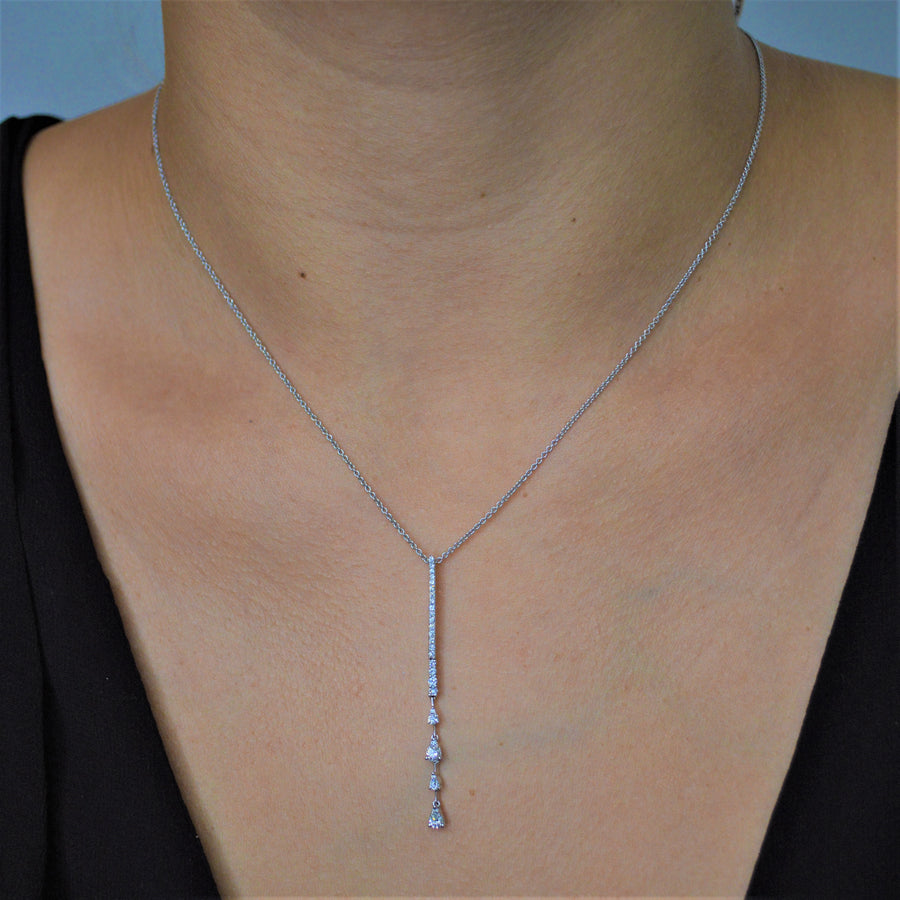 0.38ct Diamond 18K Gold Pendant Drop Chain Necklace