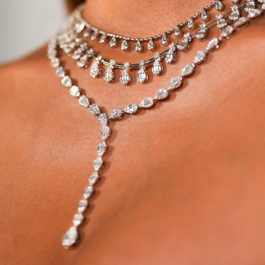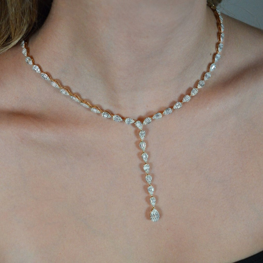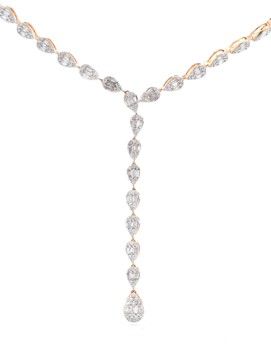 4.74ct Diamond 14K Gold Invisible Set Lariat Necklace
