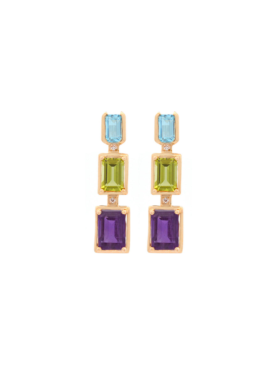 3.62ct Diamond Amethyst Blue Topaz Peridot 14K Gold Linear Earrings