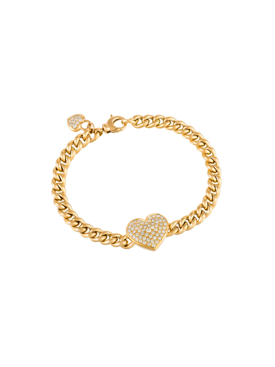 Zoom 1.01ct Diamond 18K Gold Pave Heart Cuban Chain Bracelet