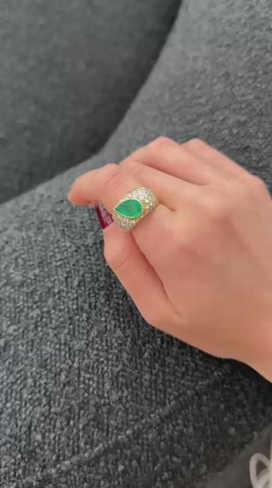 5.32ct Diamond Colombian Emerald 18K Gold Pear Ring