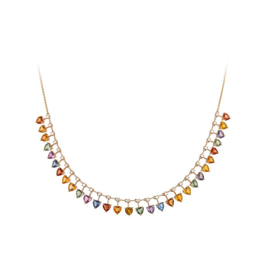 Lovely and bright, this pendant necklace makes a romantic gift for that special someone, with 18.01ct in prong-set multi color sapphire and 1.02ct in diamonds. Set in 18K Rose gold. With Insert clasp.