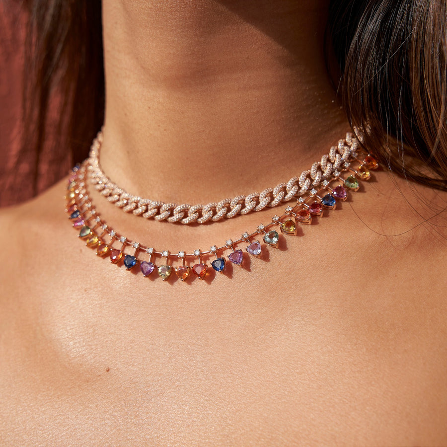 19.03ct Diamond Multi Color Sapphire 18K Gold Floating Heart Necklace