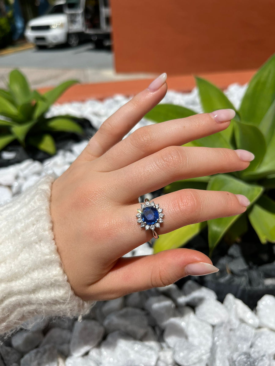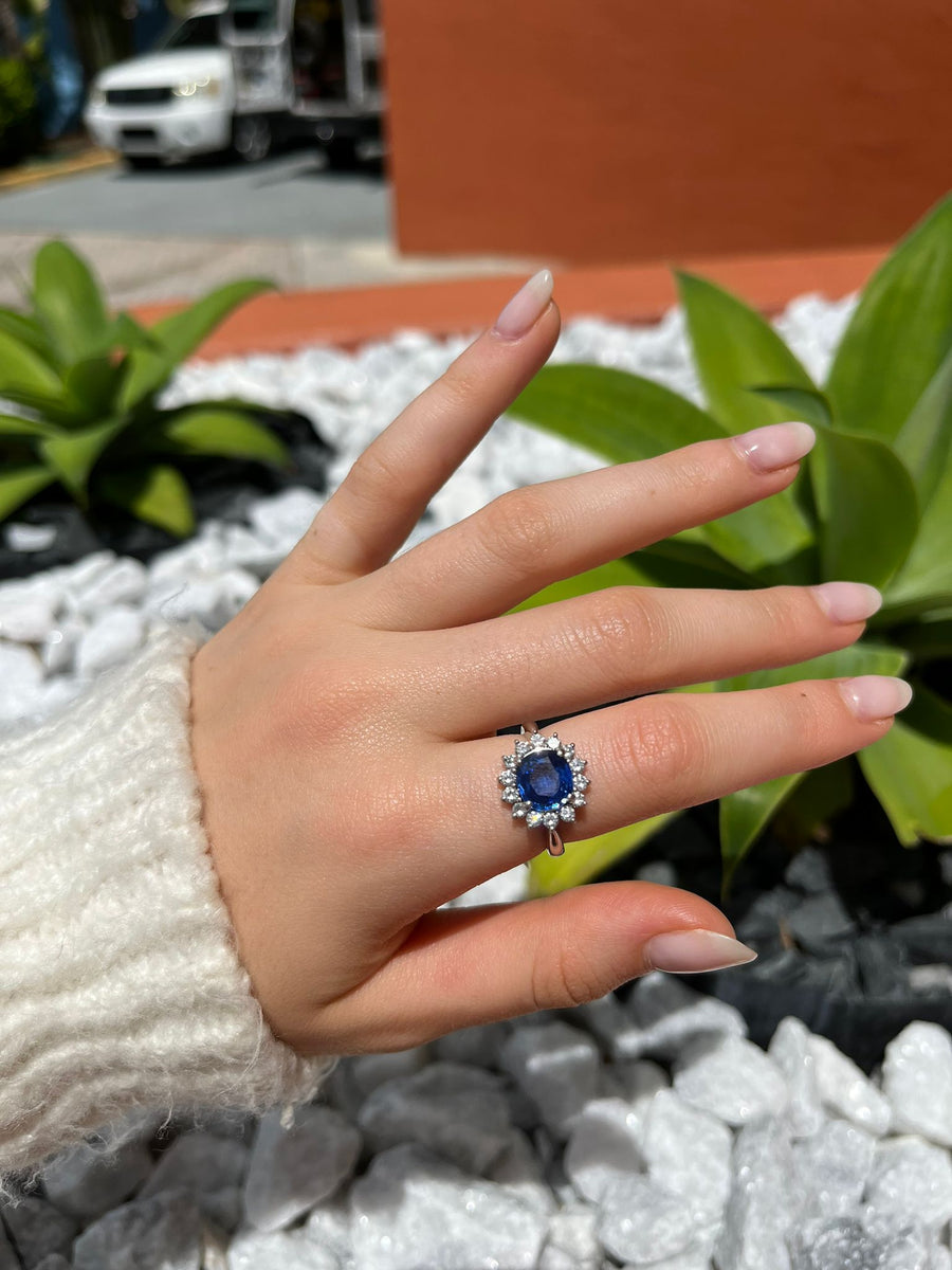 GIA 3.18ct Diamond Sri Lanka Sapphire Platinum Halo Ring