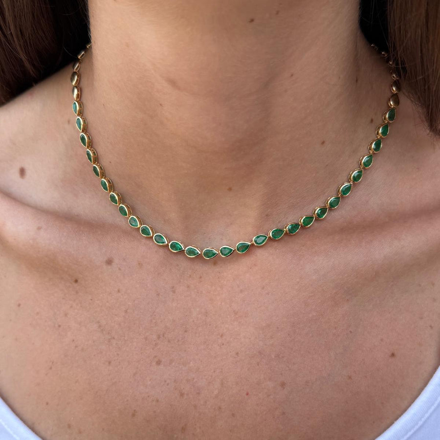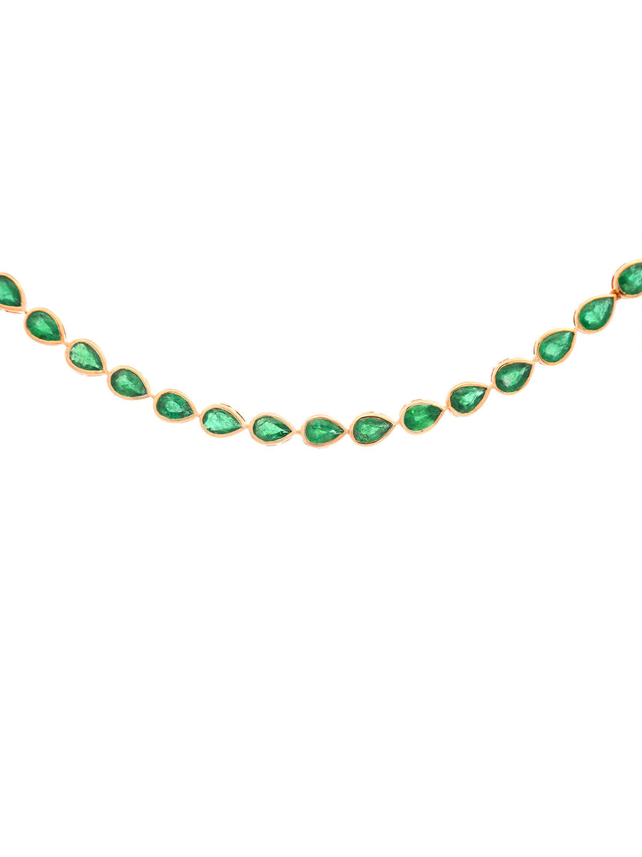 11.17ct Emerald 18K Gold Pear Cut Bezel Tennis Necklace