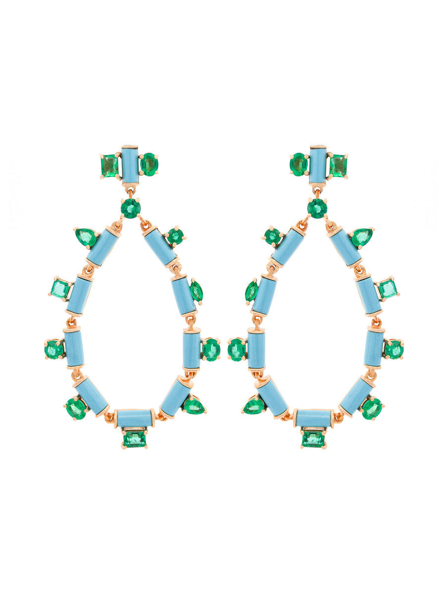 Emerald Turquoise 14K Gold Teardrop Earrings