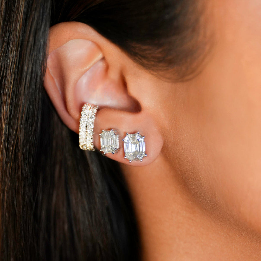 1.66ct Diamond 18K Gold Rectangular Illusion Set Earrings