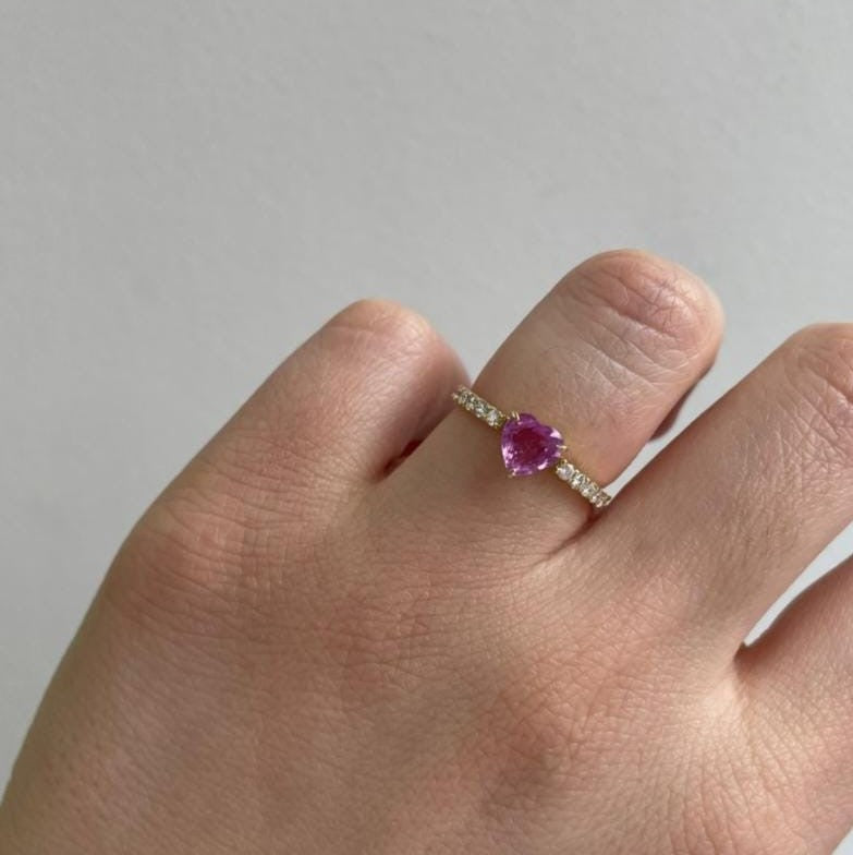 1.26ct Diamond Pink Sapphire 18K Gold Solitaire Heart Ring