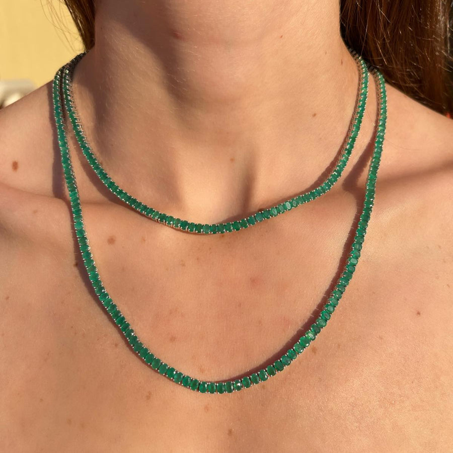 22.50ct Emerald 18K Gold Tennis Necklace 22''