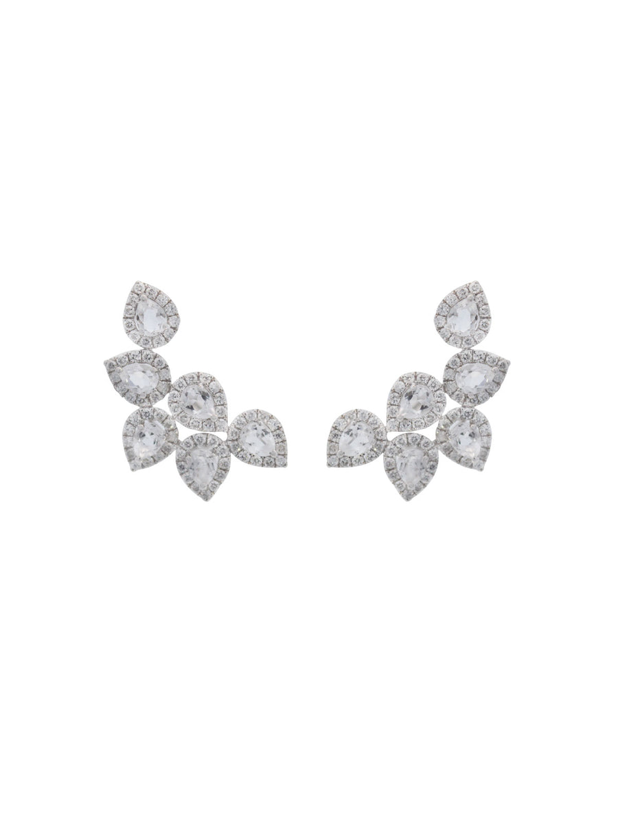2.96ct Diamond White Topaz 18K Gold Cluster Climber Earrings