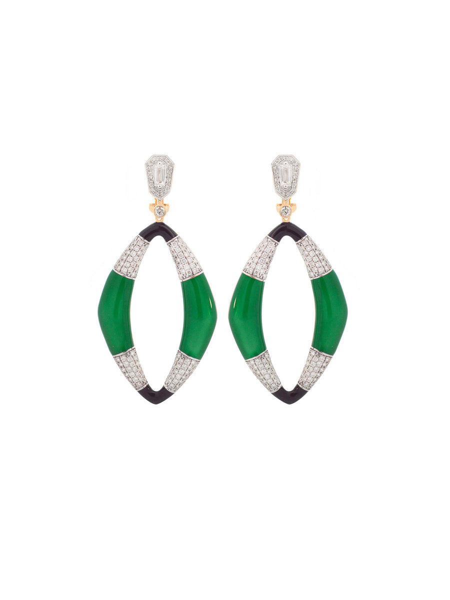 5.04ct Diamond 14K Gold Enamel Statement Earrings