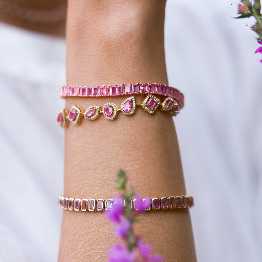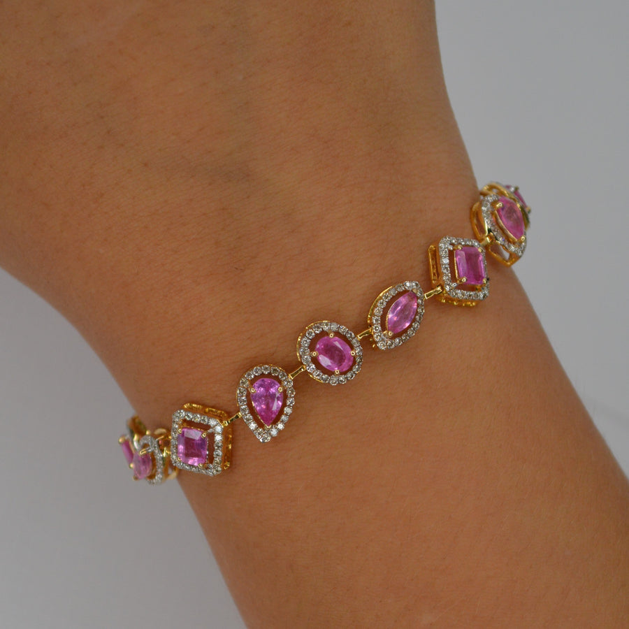 8.84ct Ruby Diamond 14K Gold Multi Shape Bracelet