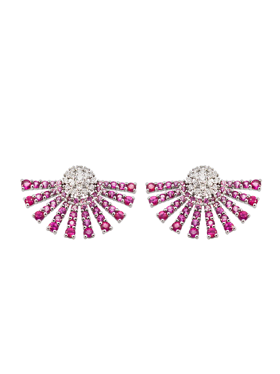 3.00ct Diamond Pink Sapphire 18K Gold Half Sunburst Earrings – Wish Fine Jewelry