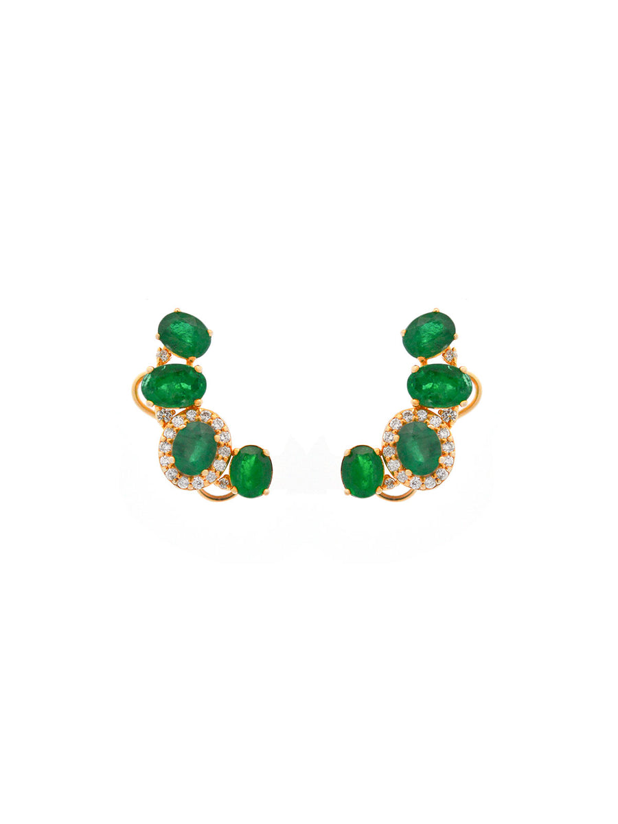Modern yet sophisticated emerald ear climber day to night. Features 0.20ct t.w. Diamond and 2.72ct emerald setting in 18K yellow gold.