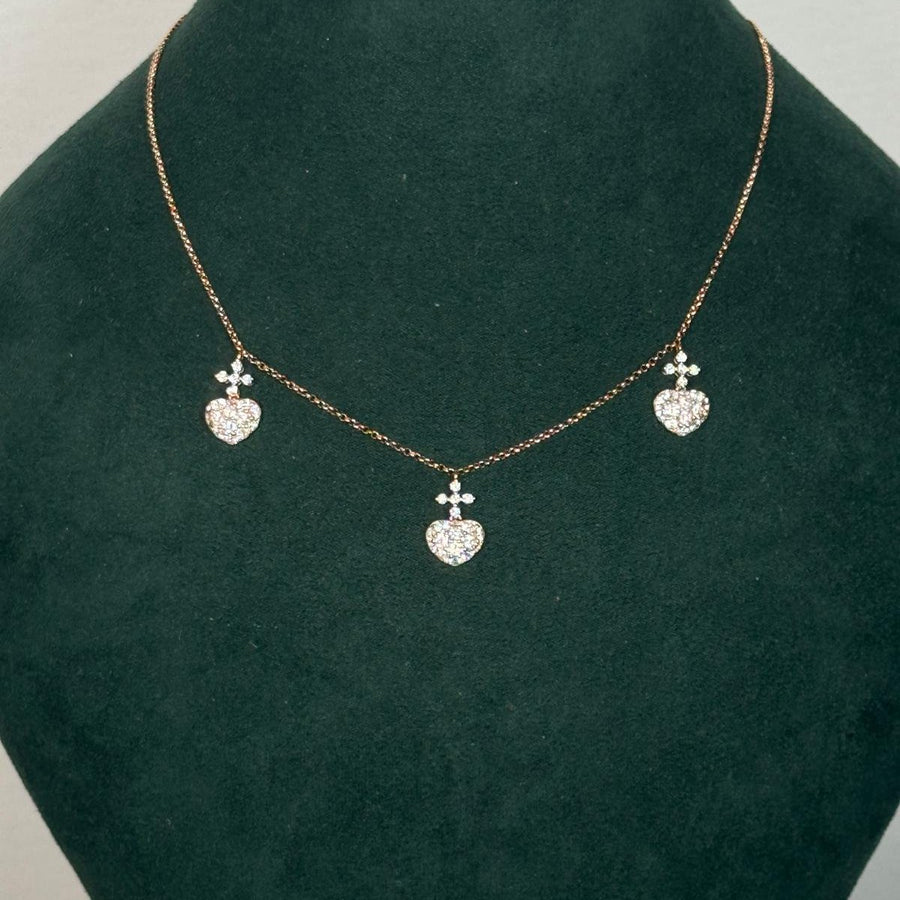 1.50ct Diamond 18K Gold Sacred Heart Stationed Necklace