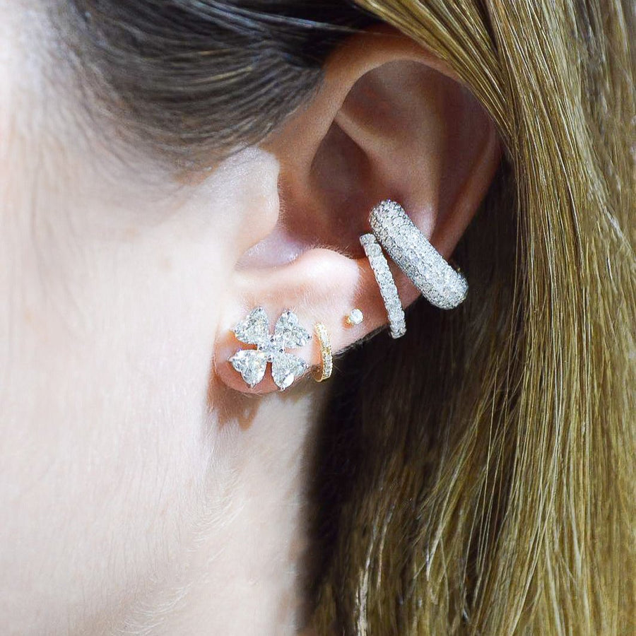 3.46ct Diamond 18K Gold Heart Cut Clover Stud Earrings