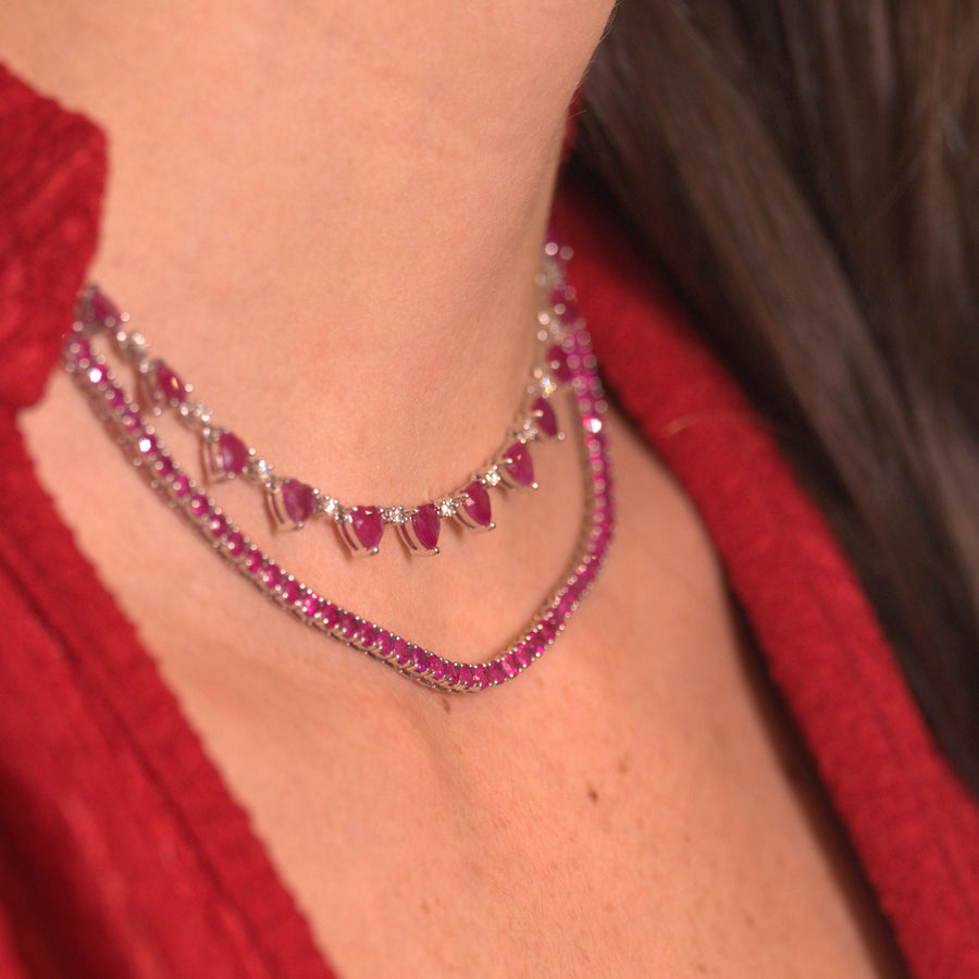 11.42ct Diamond Heart Ruby 18K Gold Necklace