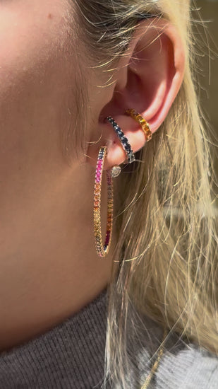 Rainbow colors in this beautiful hoop earrings! Set in 18K Rose Gold they shimmer with 3.23ct. Hinged post.
