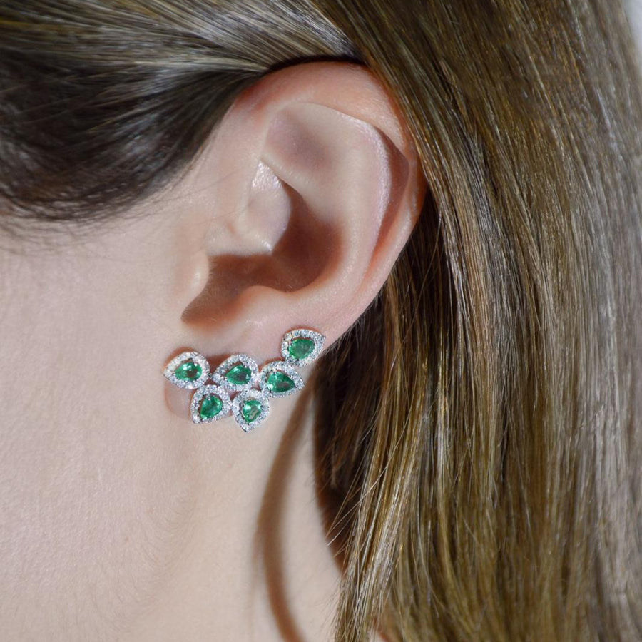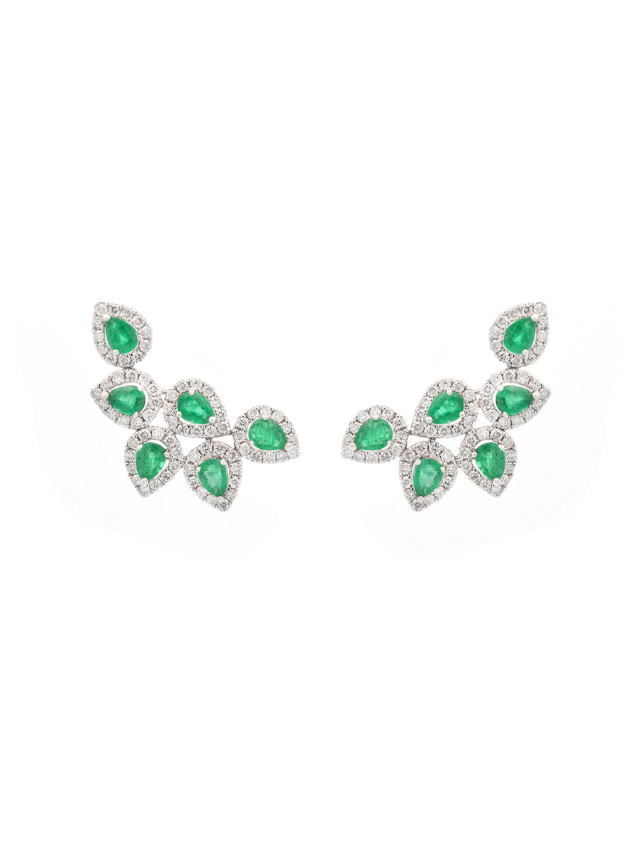 2.66ct Diamond Emerald 18K Gold Cluster Climber Earrings
