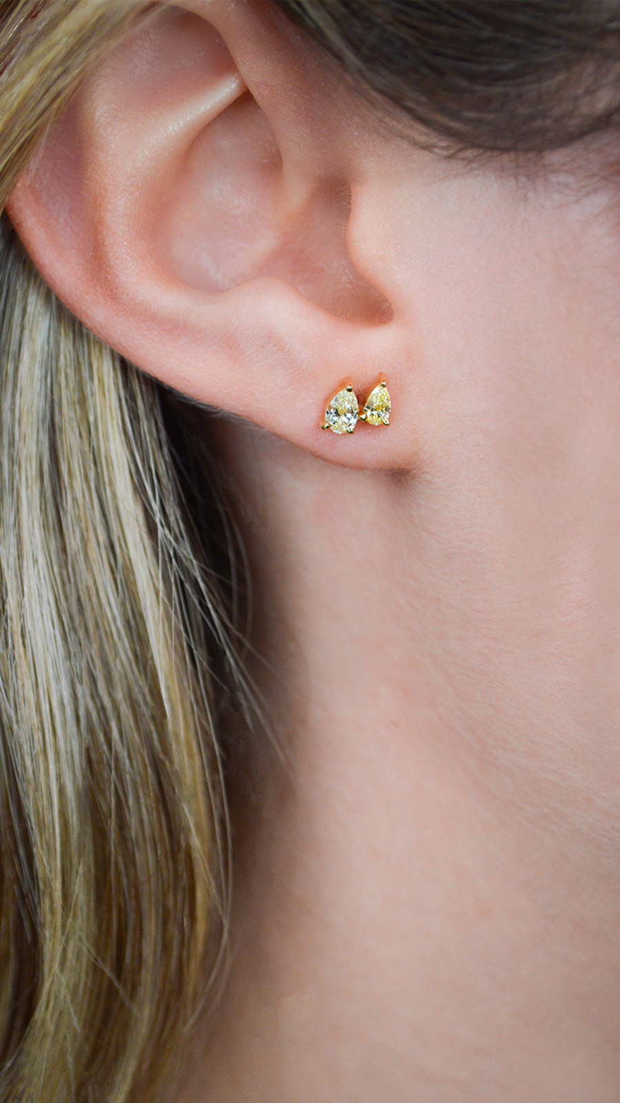 0.64ct Fancy Yellow Diamond 18K Gold Double Pear Cut Stud Earrings
