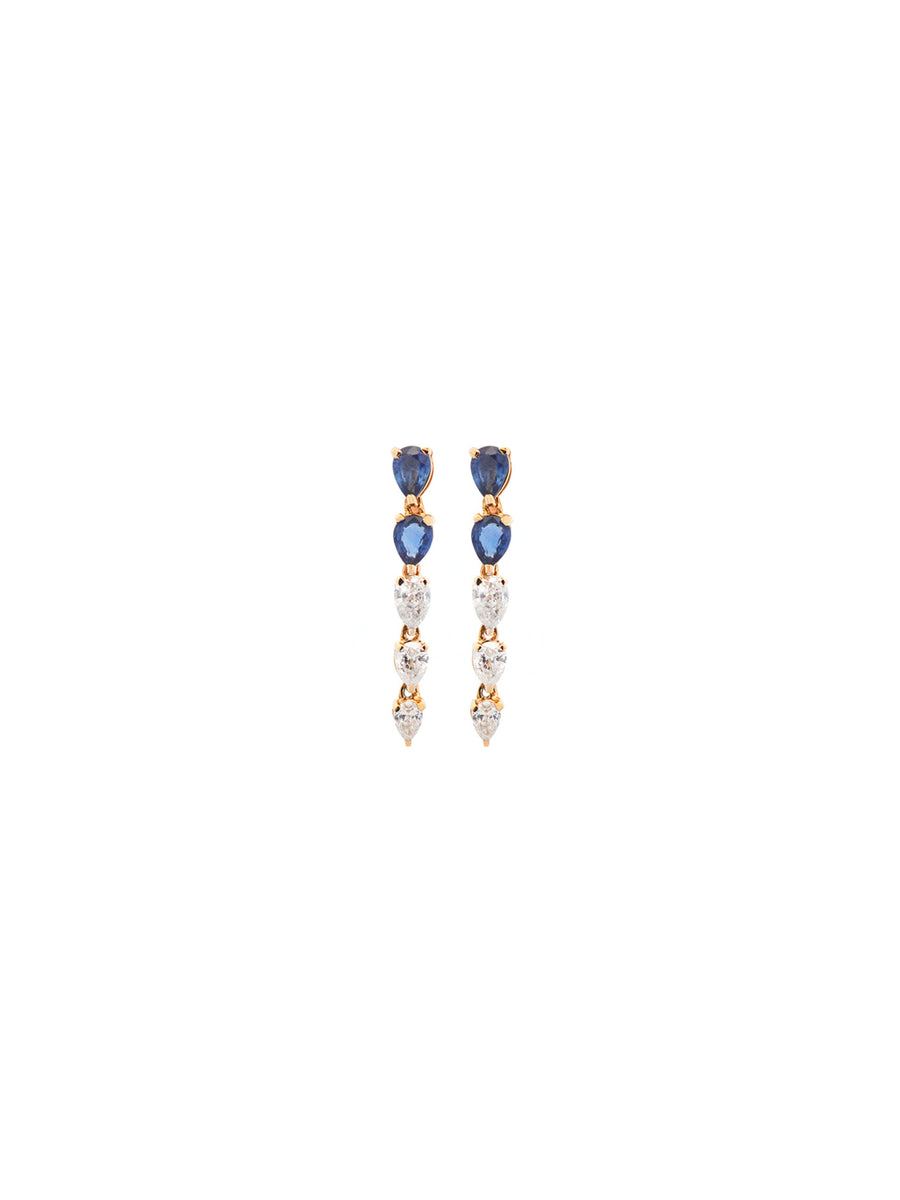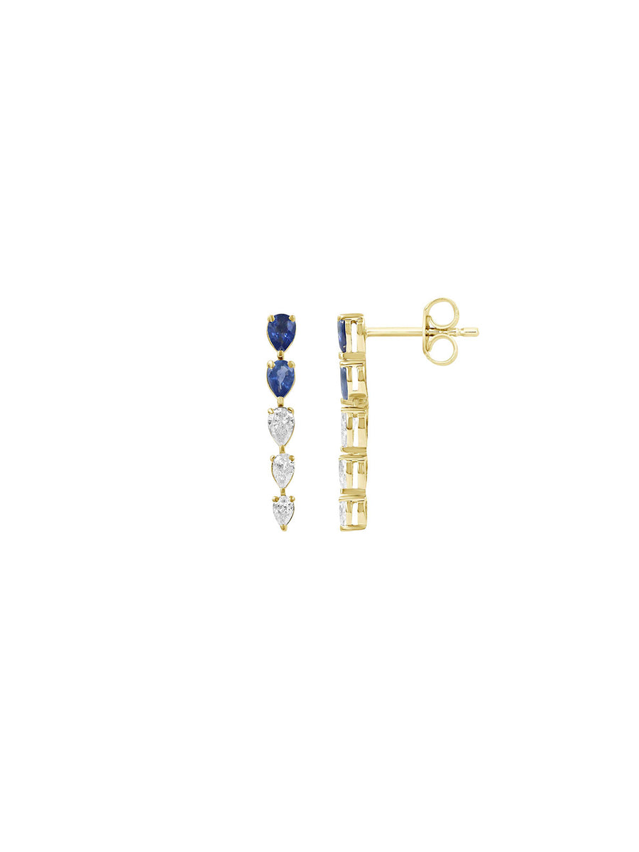 Perfect for ear layering! Features 0.42ct in diamonds, and 0.78ct in sapphires. Set in 18K Yellow Gold. Push back clasp.