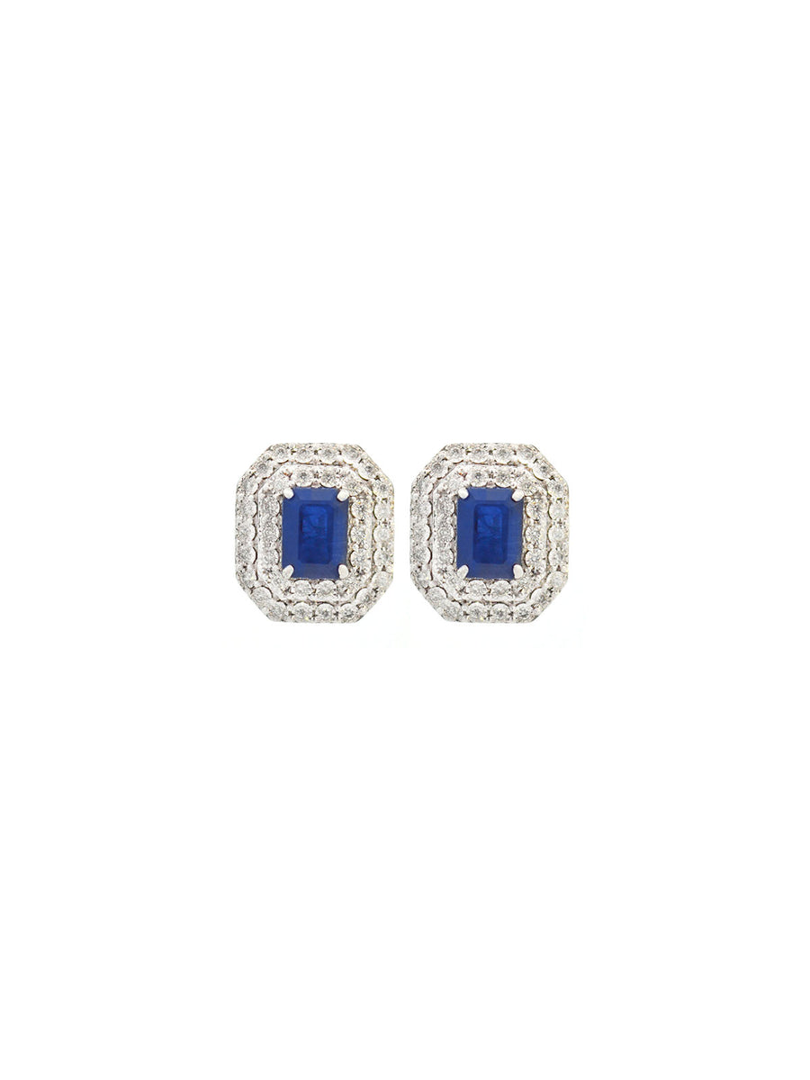 2.37ct Diamond Sapphire 18K Gold Halo Stud Earrings