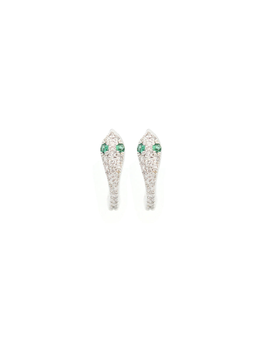 0.41ct Diamond Emerald 18K Gold Snake Hoop Earrings
