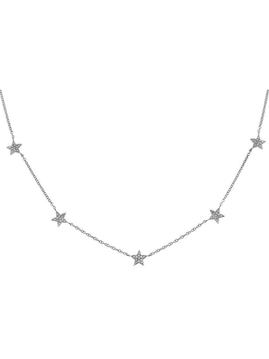 Classic piece, perfect for layering! With five pave stars. Featuring 0.75ct t.w. round-brilliant cut diamond in 18K White Gold. With Spring Ring Clasp.