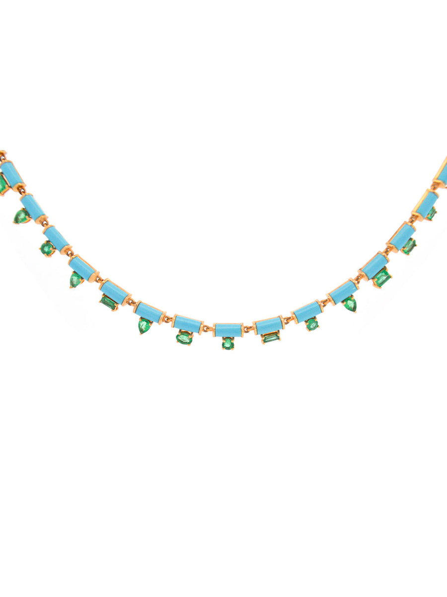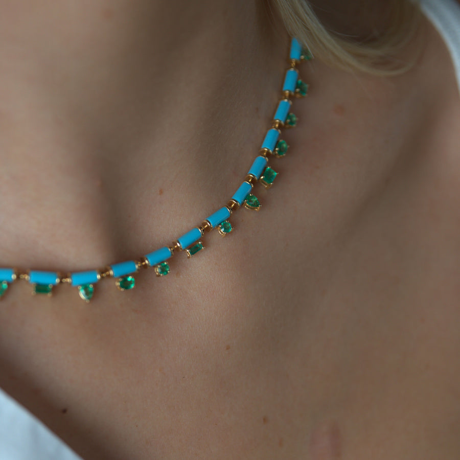 17.32ct Turquoise Emerald 14K Gold Link Necklace