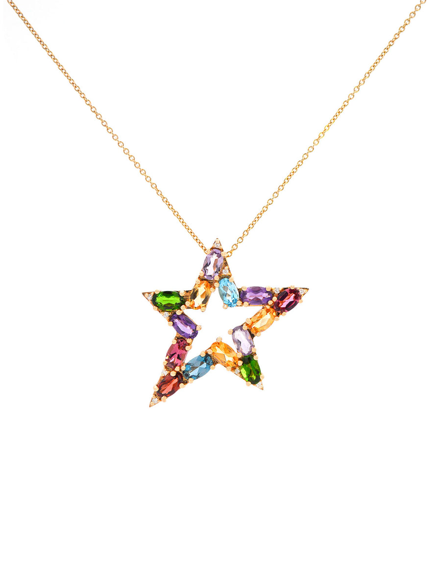 9.55ct Diamond Multi Gems 14K Gold Star Pendant Necklace