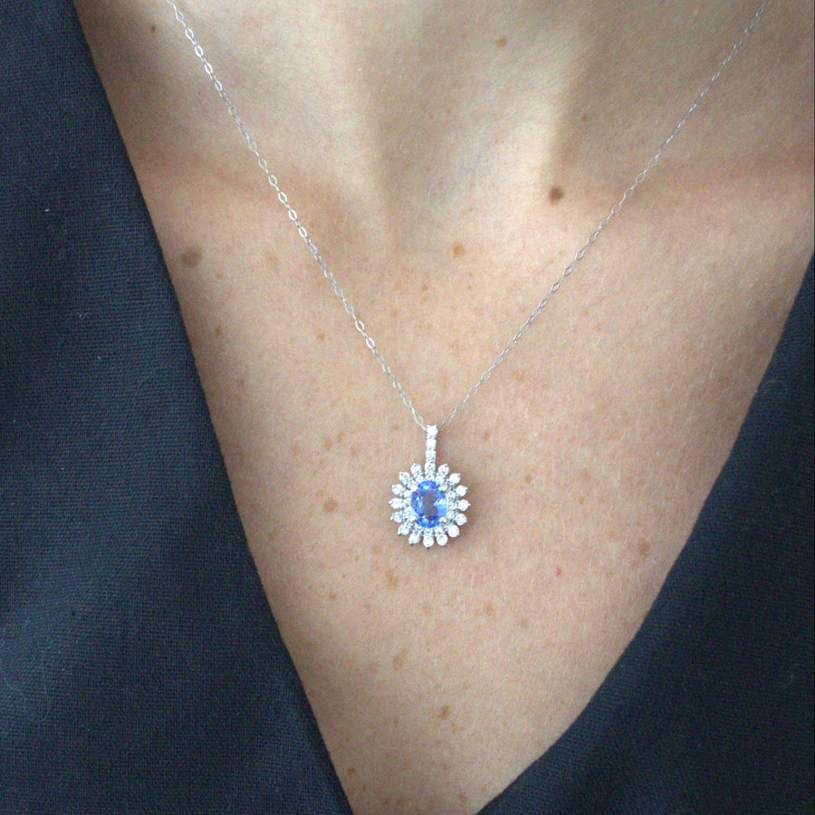 2.39ct Diamond Sapphire Platinum Pendant Chain Necklace