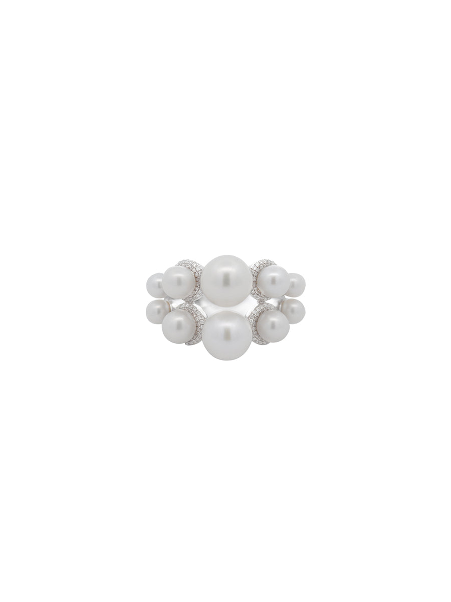 Indulge in the perfect blend of luxury and elegance with our pearls and sparkling 0.30ct in diamonds. Set in 18K White Gold.