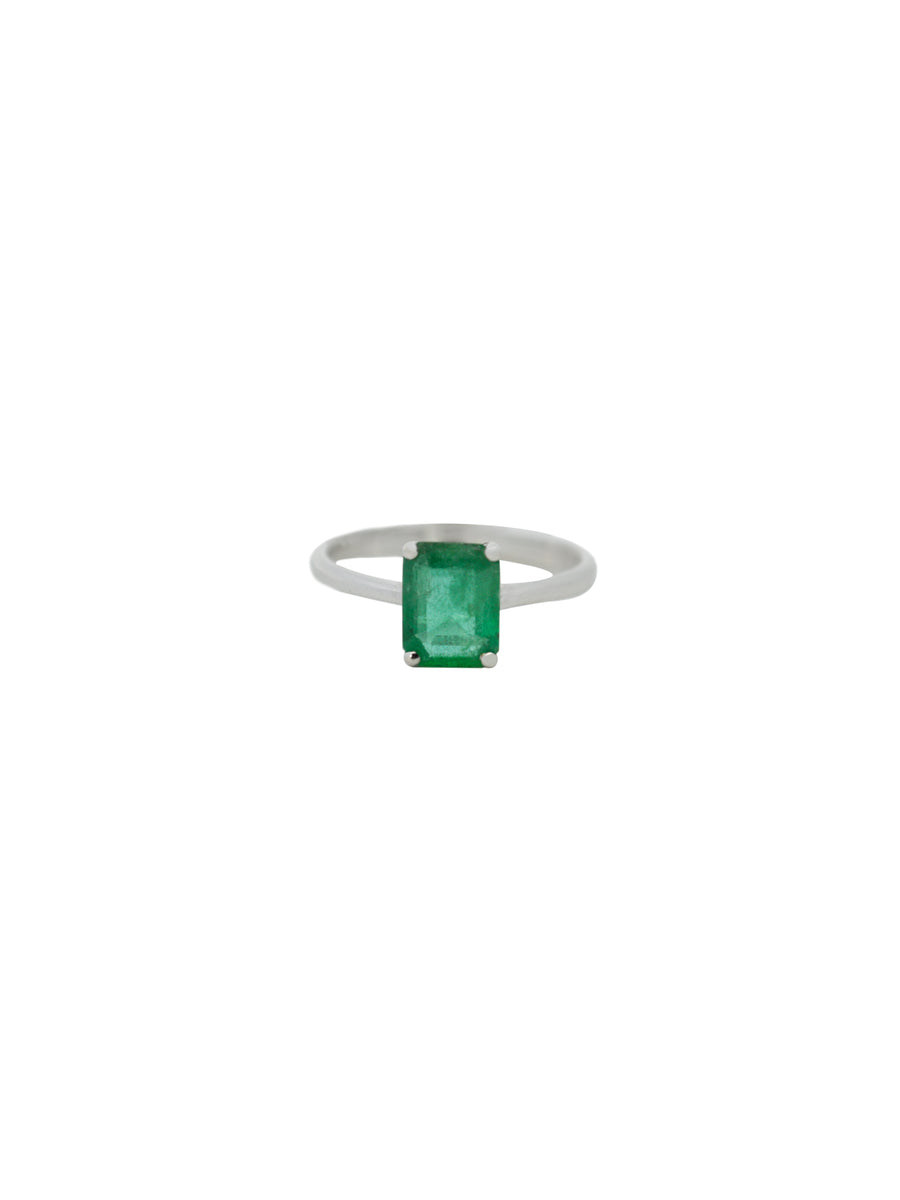 This beautiful ring frames 1.30ct in Emeralds. Set in 18K White Gold.