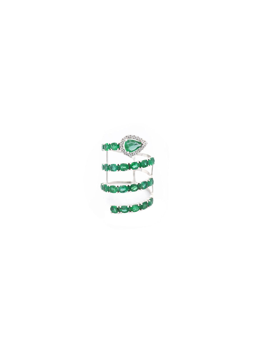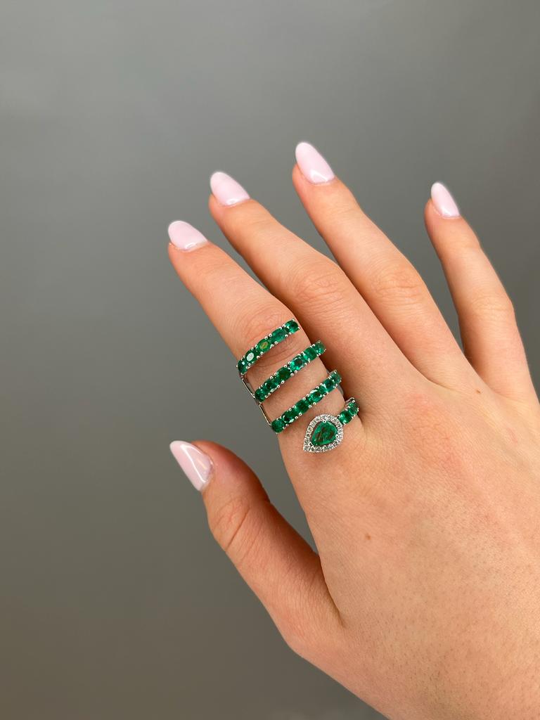 3.95ct Emerald Diamond 18K Gold Spiral Ring