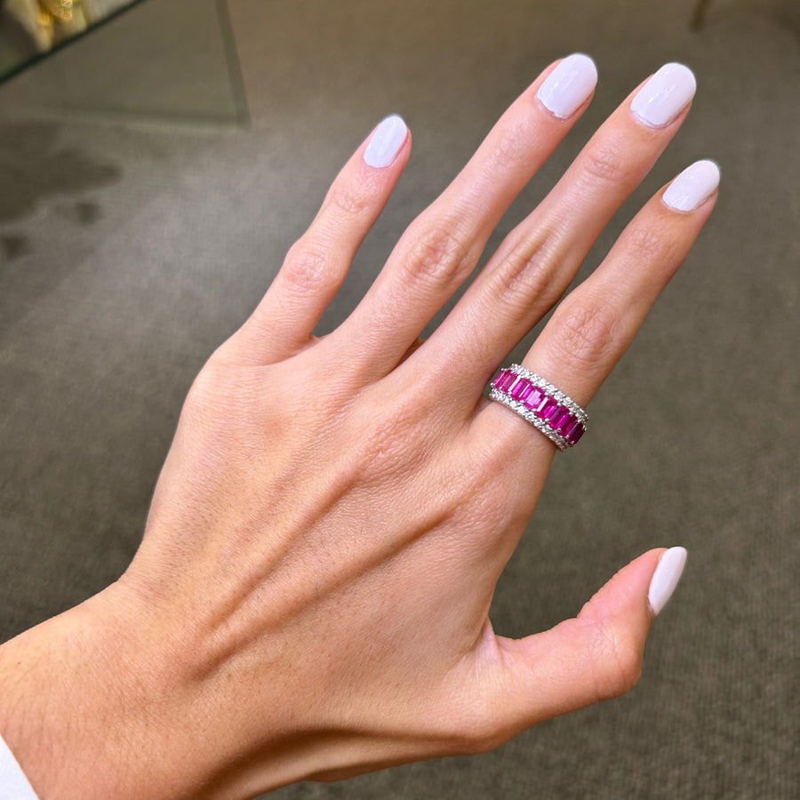 Magical piece prefect for layering! Features 3.50ct ruby and 1.07ct in diamonds. Set in 18K White Gold.