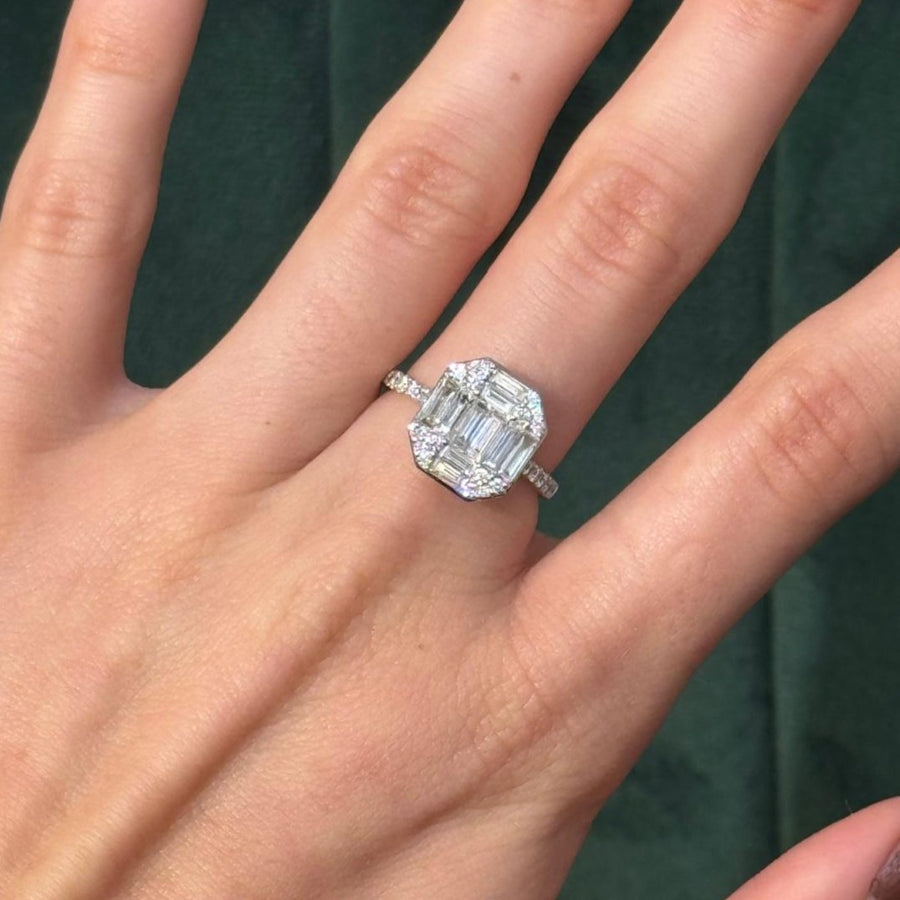1.18ct Diamond 18K Gold Illusion Statement Ring