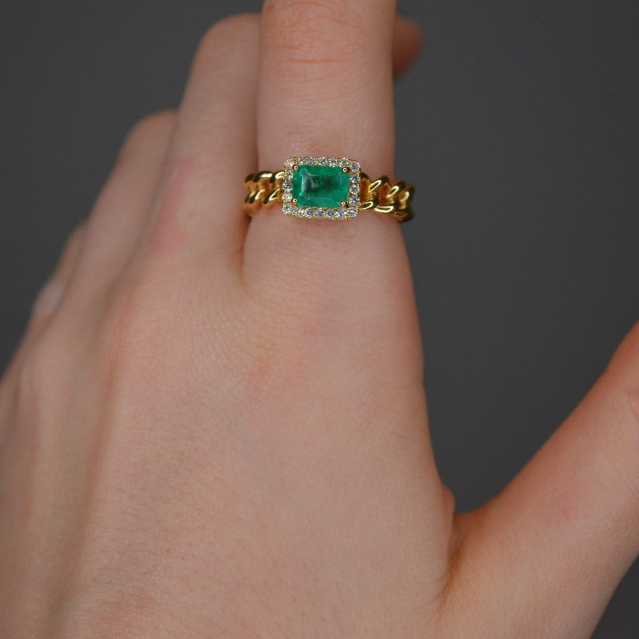 1.26ct Diamond Emerald 18K Gold Cuban Chain Ring