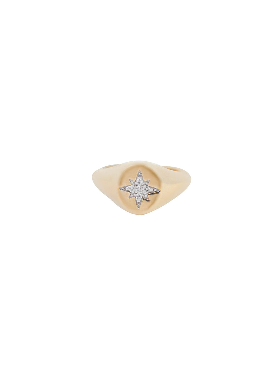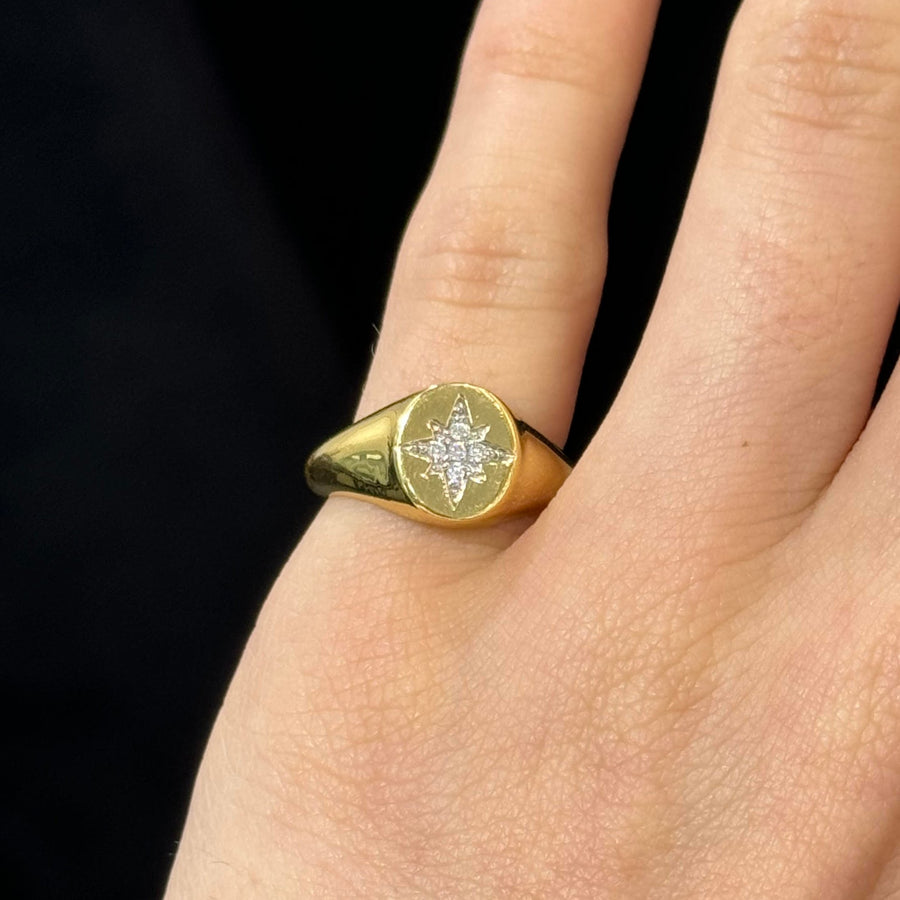 0.04ct Diamond 18K Gold Star Signet Ring