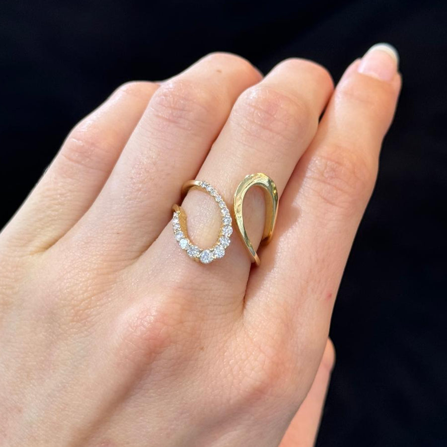 This updated trendy style features 0.48ct t.w diamond set in 14K Yellow Gold.