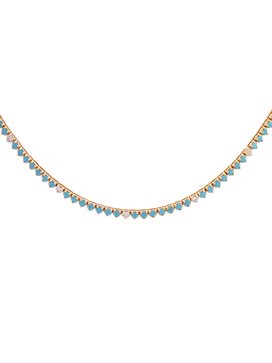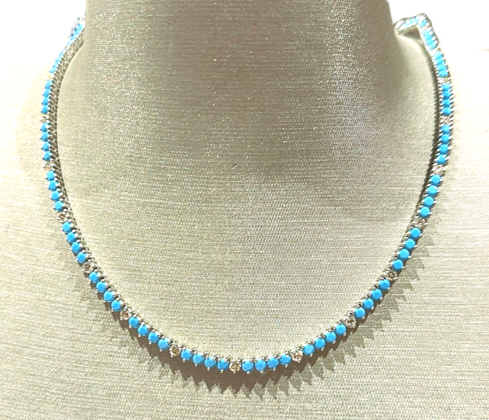 6.55ct Turquoise Diamond 14K Gold Tennis Necklace